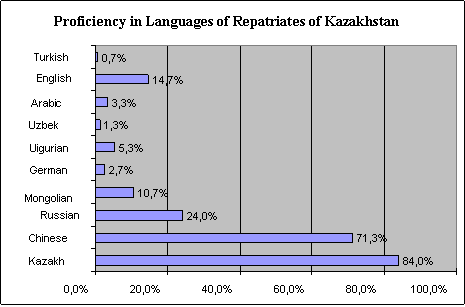 sufficient degree know the state language – Kazakh language, repatriates from China to a deficient degree know written standards of the Kazakh language based on Cyrillic alphabet