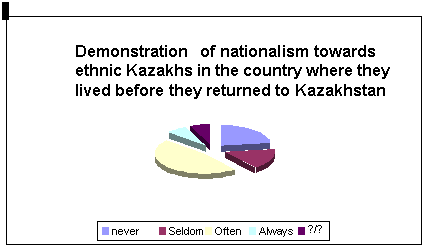 oralmans 46 % of respondents have witness and experiences cases of nationalism